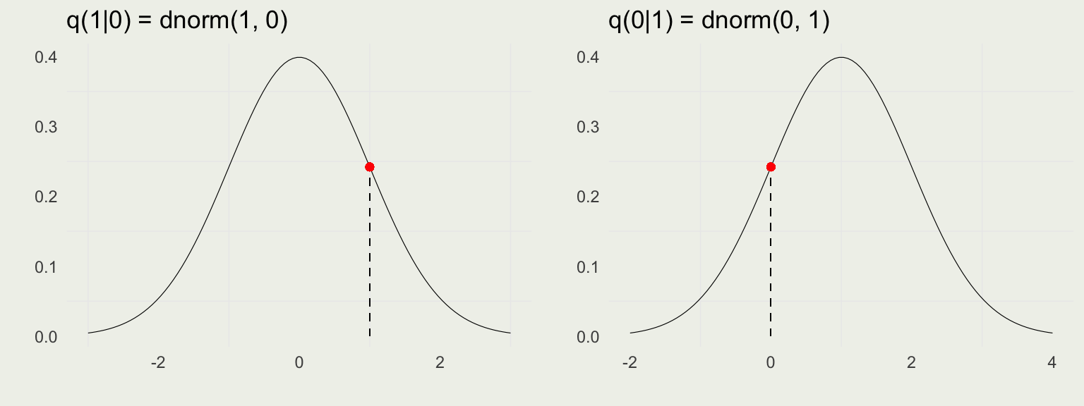 Why in case of normals, \(q(\theta'\mid\theta) = q(\theta\mid\theta')\)