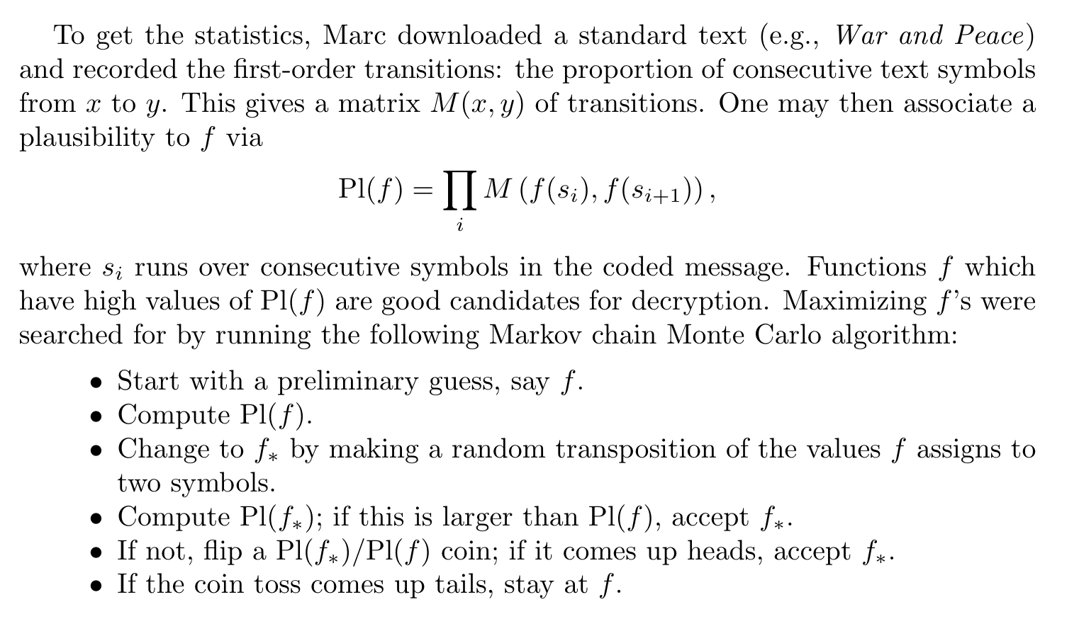 The big idea: if the proposed \(\theta'\) has a higher plausibility than the current \(\theta\), accept \(\theta'\); if not, sometimes accept \(\theta'\)