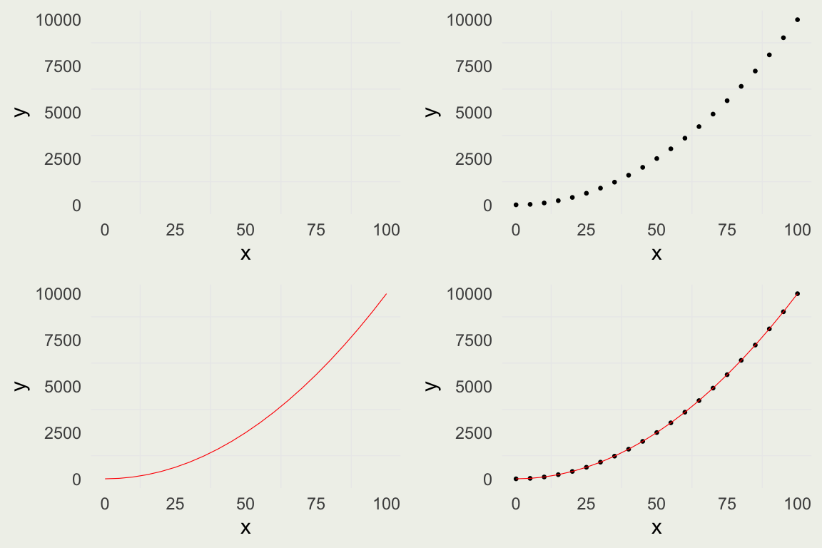 In base plot, you add elements to the plot directly, as opposed to describing how the graph is constructed