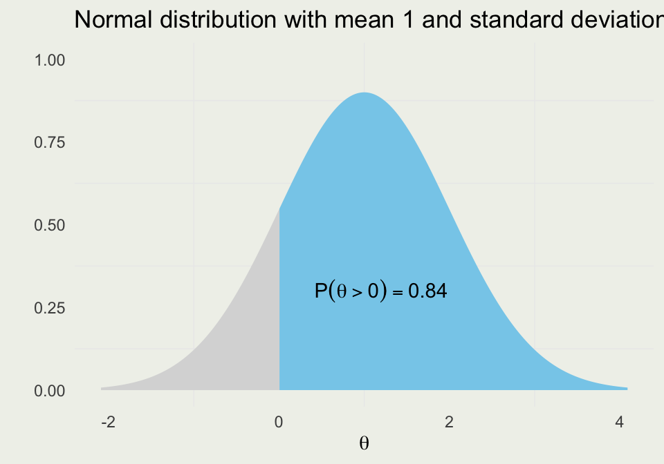 \[ \P(\theta > 0) = \int_{0}^{\infty} p_{\theta}\, \text{d}\theta \]