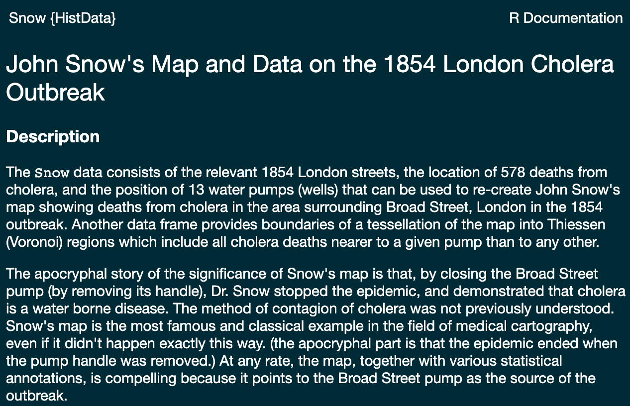 We will demonstrate with John Snow’s data from the 1854 cholera outbreak