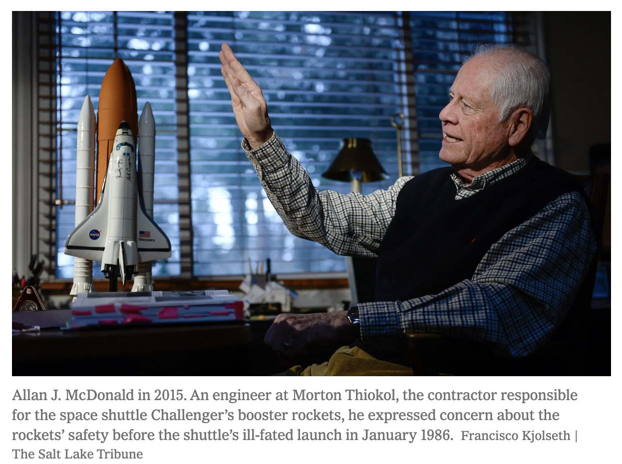 On January 28, 1986, shortly after launch, Shuttle Challenger exploded, killing all seven crew members.