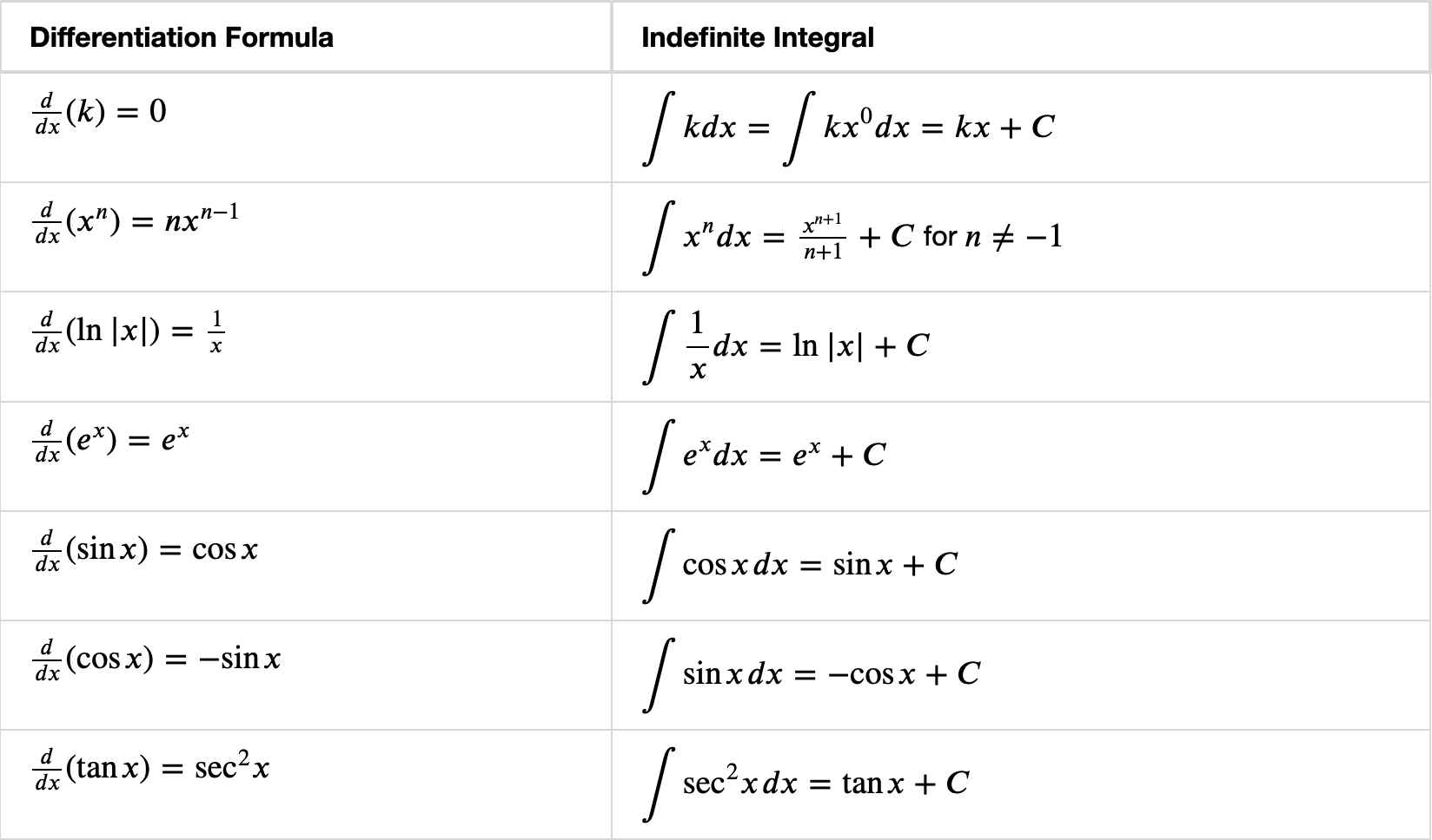 \[ \begin{eqnarray} \int [f(x) + g(x)] \, dx &=& \int f(x) \, dx + \int g(x) \, dx \\ \int [c \cdot f(x)] \, dx &=& c \int f(x) \, dx \end{eqnarray} \]