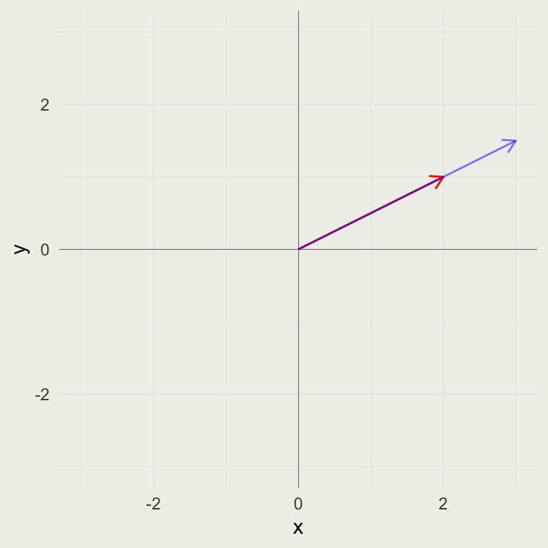%*%, not *, which will produce a component-wise multiplication, not a dot product\[ v^T w = v_1w_1 + v_2w_2 + \cdots + v_nw_n \]